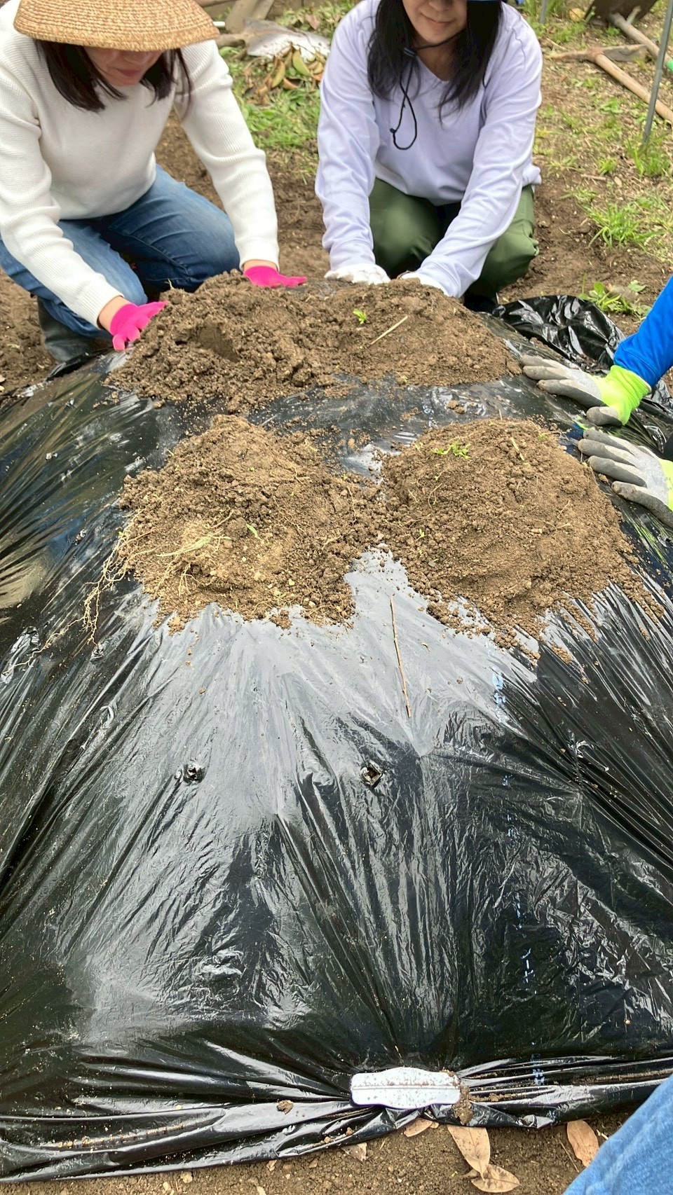 午前中の座学でイメージしたことを畝作りで実践しました。・菌ちゃん農法を通じて参加者の方々に敵を無くすのではなく、菌や虫と共に生きる。