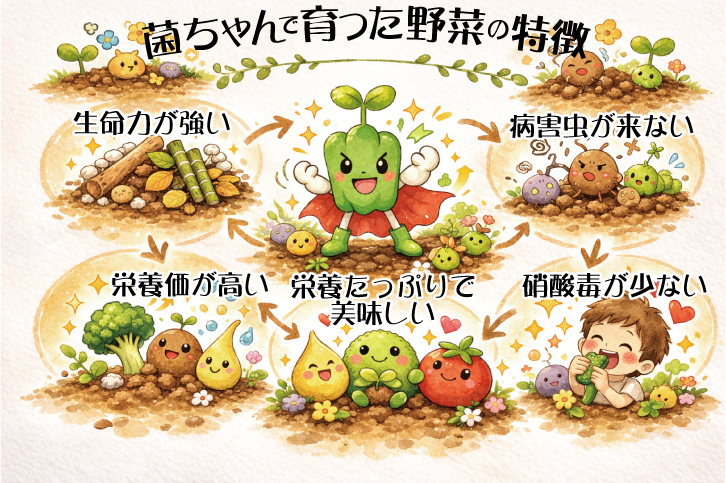 菌と野菜がつながる事により元気な野菜が育つ農法